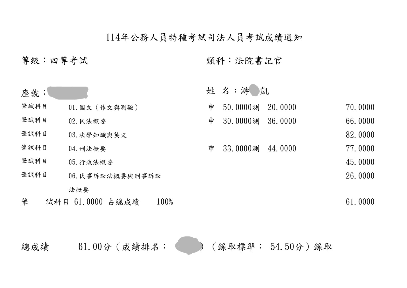 114四等書記官-游O凱上榜心得