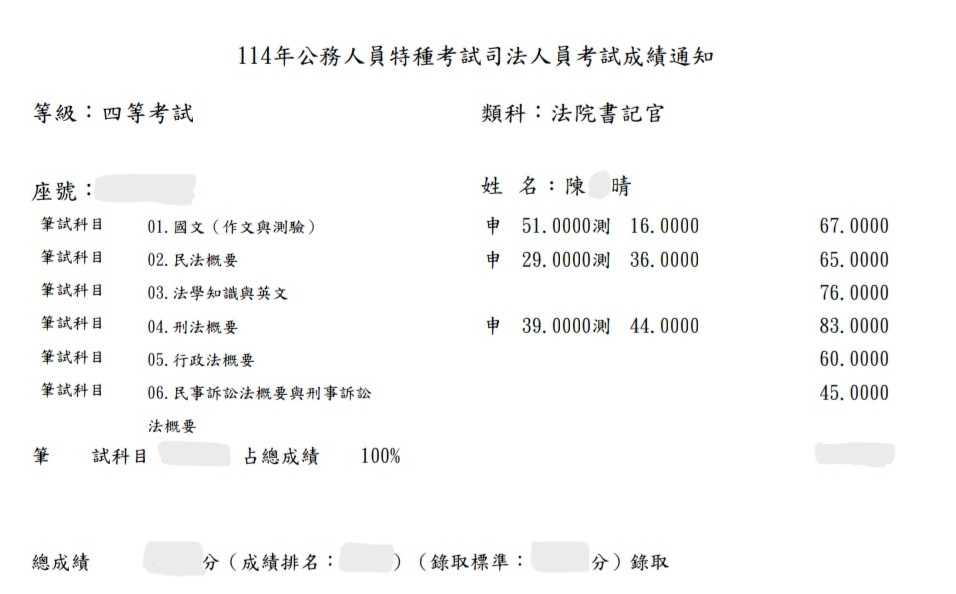 畢業於台北大學法律系,在準備司律考試的同時,同時四等書記官供自己更多選擇的機會。