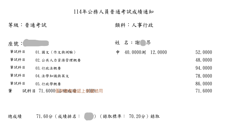 大家好,有幸這次普考上榜,想分享一些備考的心路歷程給其他同在書海奮鬥的考生們。