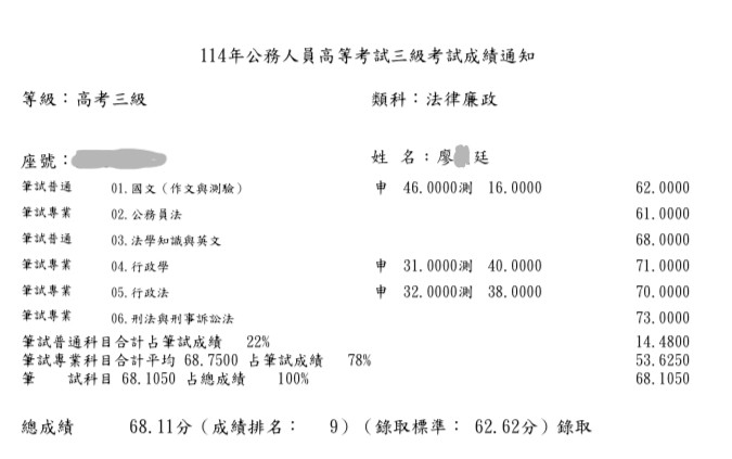 因為是法律系畢業,所以原本目標也是放在司律,但經過一年多全職考生的努力,決定先把目標放在高普考上。又相對於民法,我對刑法比較有興趣,在考量法制跟法廉的工作內容,決定考高考法律廉政。