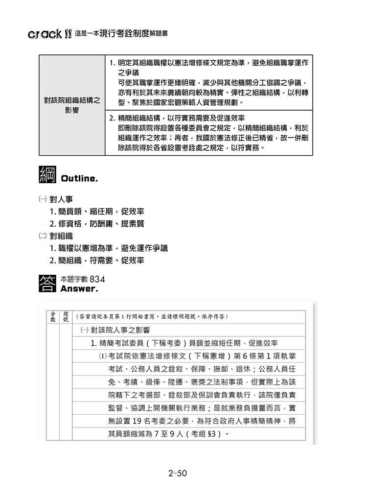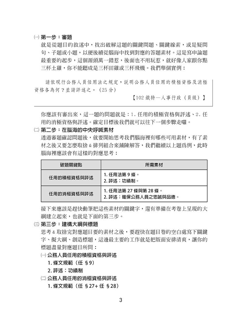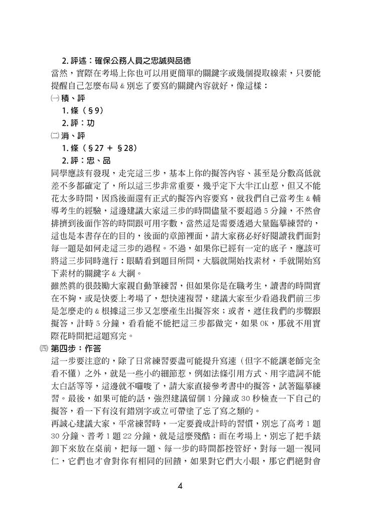 為了因應以上的趨勢,這次改版除了以考銓法制為主要基礎之外,我們盡可能在擬答中融入了公共人資的概念,從模擬多題的實戰角度、以終為始的讀書方法,希望能持續在申論輸出上幫助大家,不再害怕申論寫作。