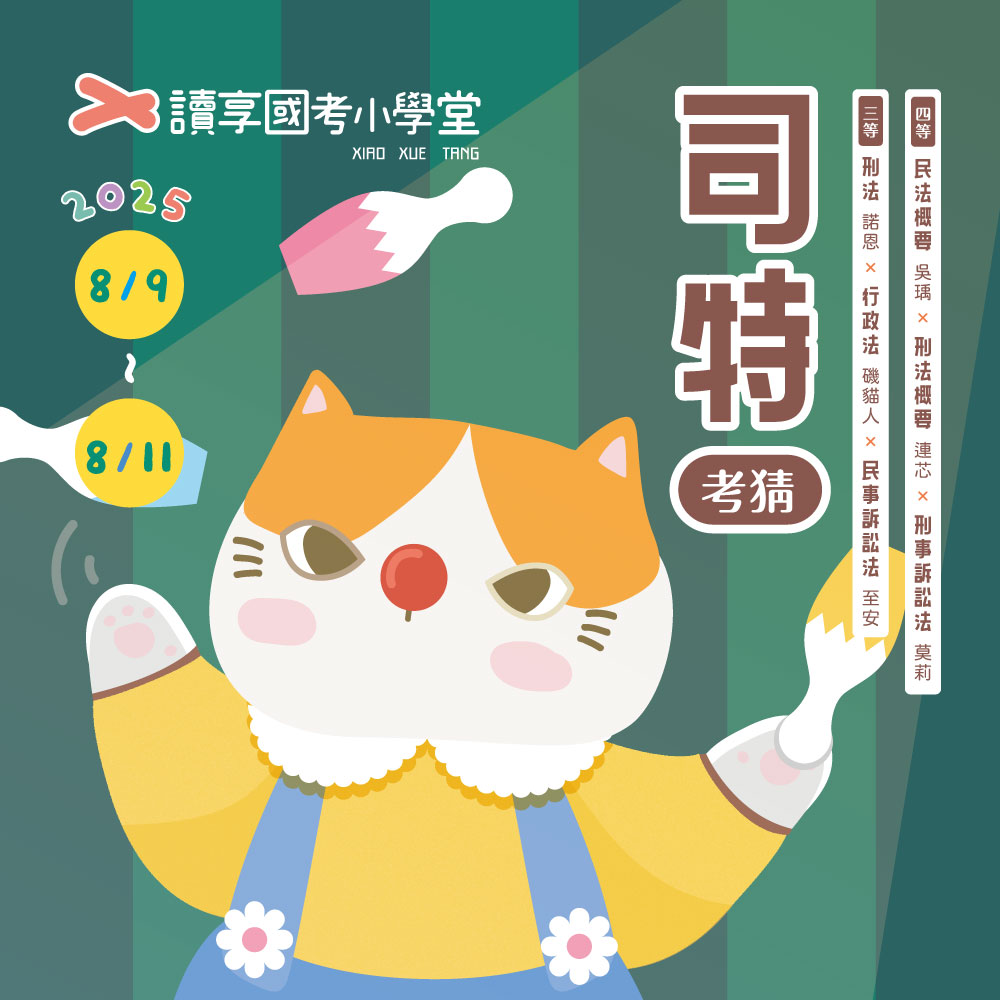 三等民法(程穎) 行政法(磯貓人) 四等刑法概要(連芯) 民事訴訟法概要(程顥)