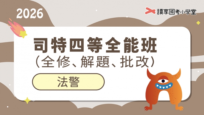 ◆ 2025單科任選一科(JANGO除外) ◆ 2026法學緒論先修班(2堂) ◆ 2026專業科目全修班 ◆ 2026共同科目精修班 ◆ 2026強化解題班:行政法、刑法、刑訴、民法、民訴 ◆ 大考身心歐趴課程(營養、心理、運動) ◆ 每月實務彙整 |
